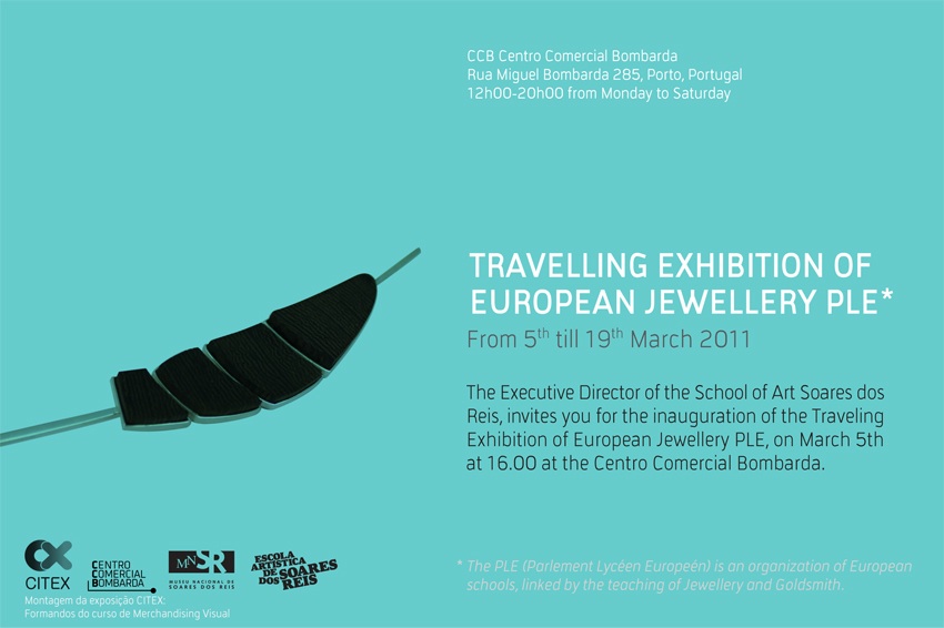 Exposição Itinerante de Joalharia Europeia PLEO PLE (Parlement Lycéen Européen), é uma organização de escolas, quase todas europeias, ligadas pelo ensino da Joalharia e da Ourivesaria. Esta organização já existe há cerca de duas décadas e promove intercâmbios de alunos entre os membros, apoiados nos programas Comenius e Leonardo da Vinci, ou mesmo de iniciativa particular. Com o intuito de se darem a conhecer, as escolas, organizam anualmente entre si uma exposição itinerante constituída por trabalhos de alunos oriundos dessas escolas. De 5 a 19 Março deste ano podemos vê-la no Porto, no Centro Comercial Bombarda, onde vão participar 12 escolas, com 60 trabalhos na totalidade.
